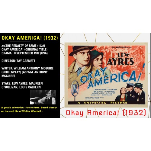 Okay America! (1932) Tay Garnett Lew Ayres, Maureen O'Sullivan, Louis Calhern