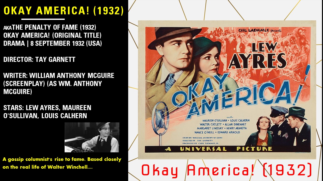 Okay America! (1932) Tay Garnett Lew Ayres, Maureen O'Sullivan, Louis Calhern w