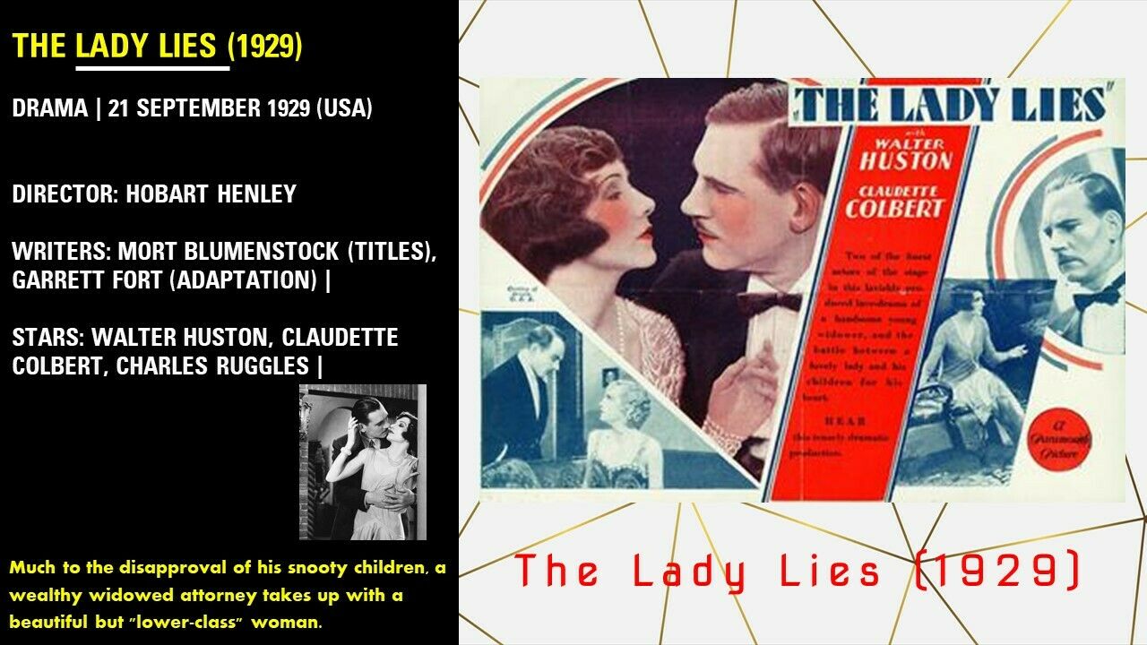 The Lady Lies (1929) Dir Hobart Henley Stars: Walter Huston, Claudette Colbert w