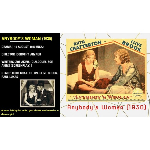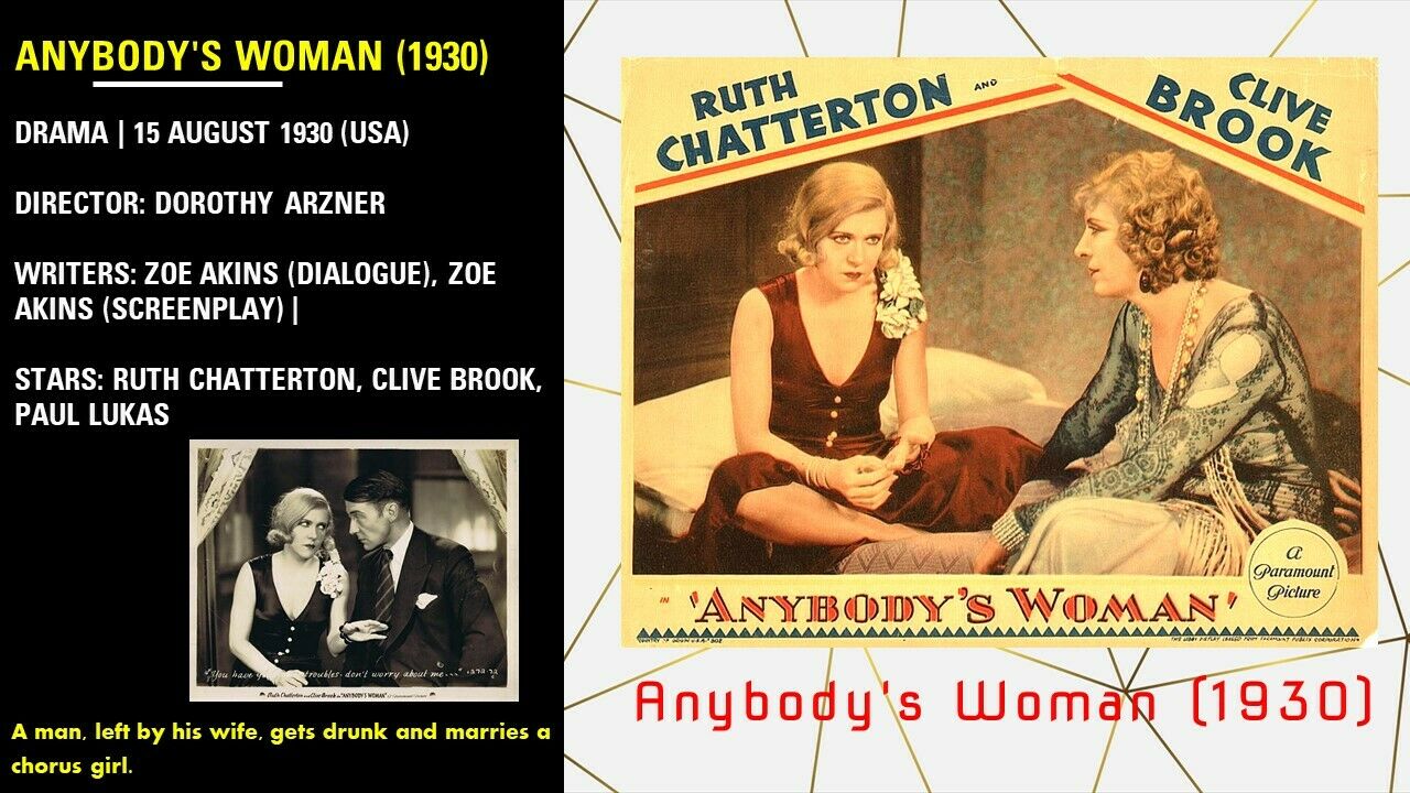 Anybody's Woman (1930) Dir Dorothy Arzner Ruth Chatterton, Clive Brook, Paul Lukas w