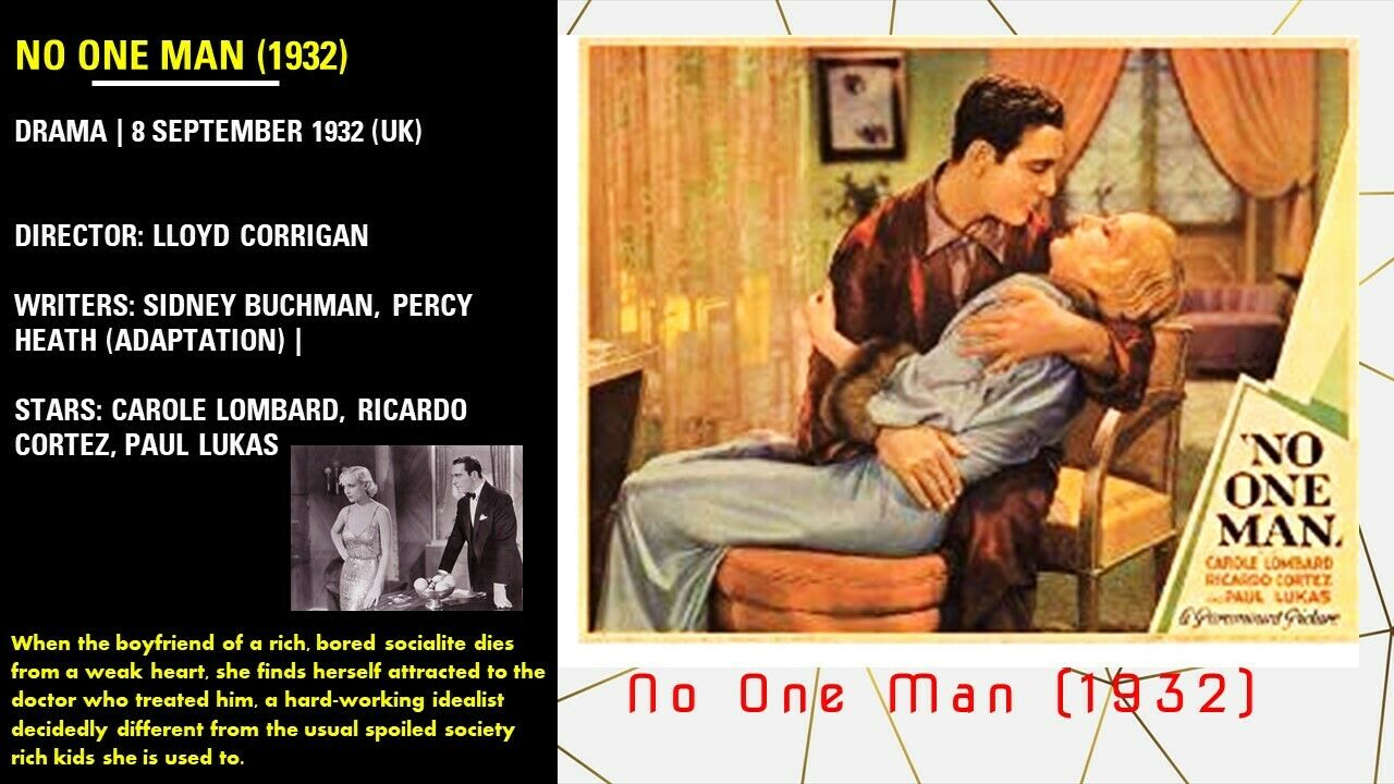No One Man (1932) Dir Lloyd Corrigan Carole Lombard, Ricardo Cortez, Paul Lukas