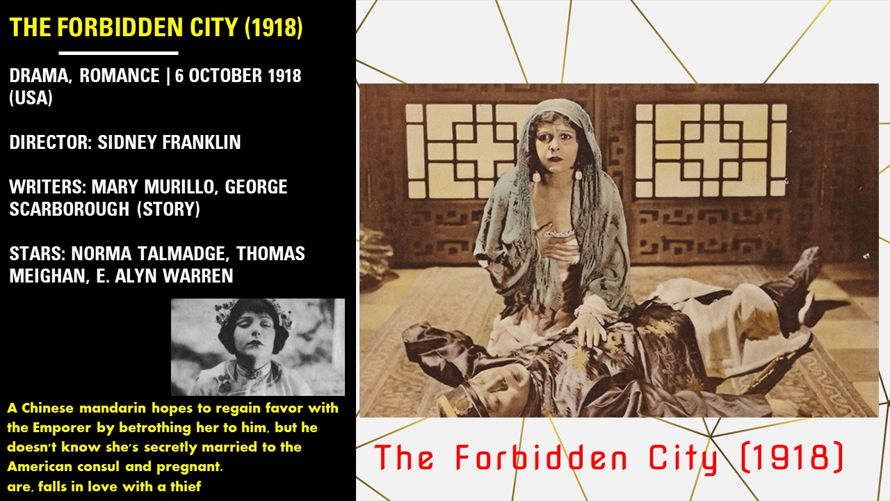 The Forbidden City (1918) Director: Sidney Franklin Writers: Mary Murillo w